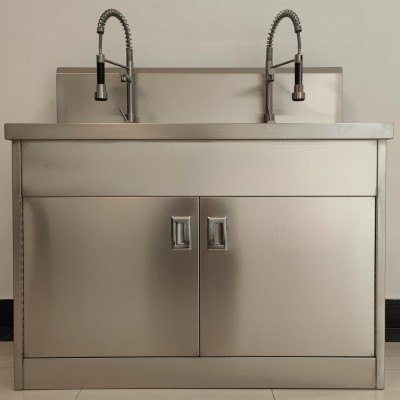 不锈钢洗手池出水方式分为:感应式、膝碰式、脚踏式