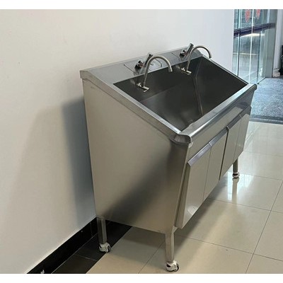 不锈钢洗手池出水方式分为:感应式、膝碰式、脚踏式