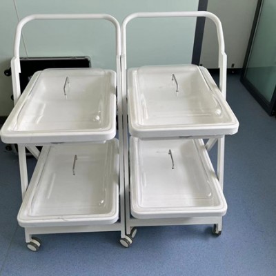 小推车二层、三层独立式设计,周转盘材料由高分子复合材料独立开模制成,车体由钢体喷塑而成,具有耐腐蚀、不沾水、车行顺畅、取放方便等优点。盘内内镜存放导航隔条使污染部分分离。多层设计使客户在使用过程中可将清洁和污染的内镜分层标明后置放,可达到高效周转,避免交叉感染等功效。