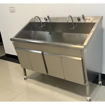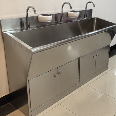 不锈钢洗手池出水方式分为:感应式、膝碰式、脚踏式