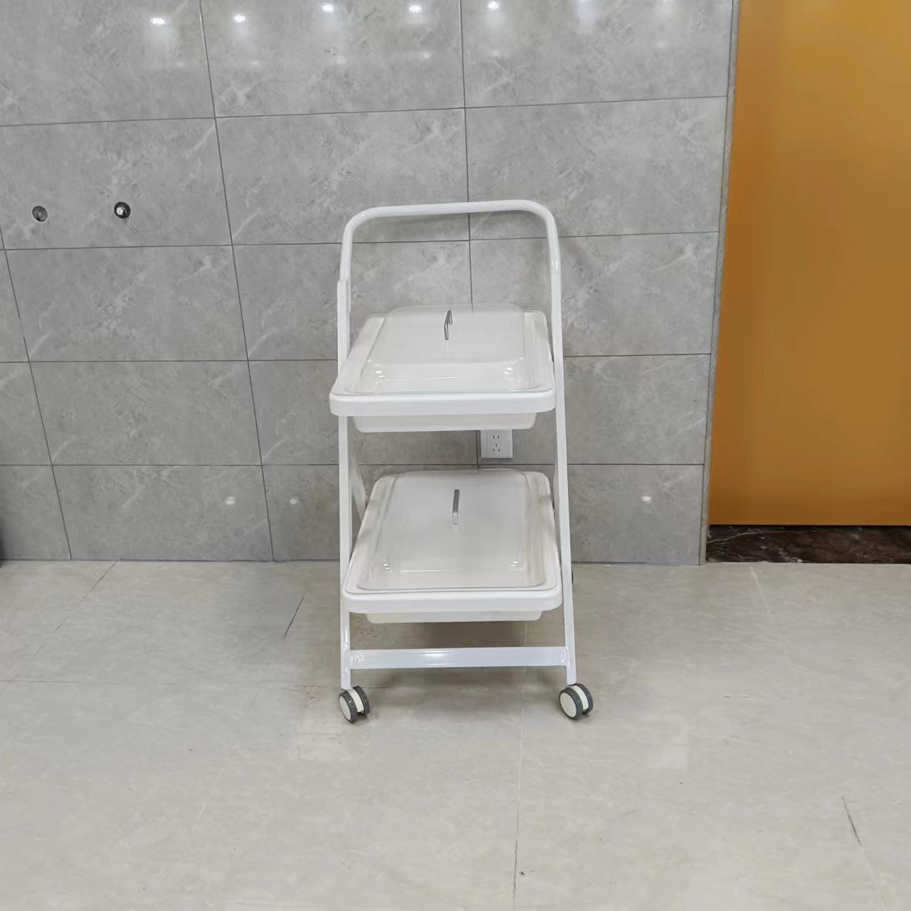 小推车二层、三层独立式设计,周转盘材料由高分子复合材料独立开模制成,车体由钢体喷塑而成,具有耐腐蚀、不沾水、车行顺畅、取放方便等优点。盘内内镜存放导航隔条使污染部分分离。多层设计使客户在使用过程中可将清洁和污染的内镜分层标明后置放,可达到高效周转,避免交叉感染等功效。
