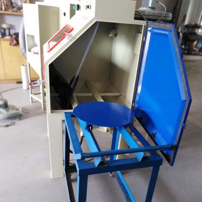2、可加装活动台车和转盘,操作时需将工件放在台车转盘上,然后将推入机内即可从事喷砂作业,十分简单省力, 推车可在车间推动行走。载重:150公斤。