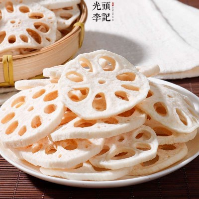 新鲜莲藕,采用VF工艺制成莲藕脆,锁住新鲜,锁住美味,使莲藕脆保持原有的色、香、味、形,原滋原味,酥脆爽口,蔬香浓郁,齿颊留香。