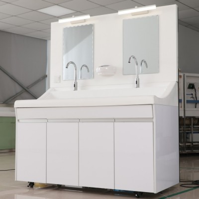 可按照客户的要求选配出水:感应、膝控、脚控;高背板设备配有自动感应皂液器、 颈式水龙头、灯光镜子、选配烘手器 、热水器。低背板洗手池 配颈式水龙头、选配烘手器 、热水器。