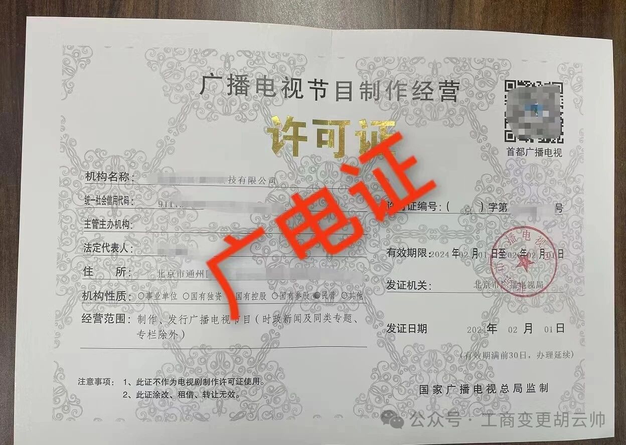 - 经营范围:营业执照的经营范围应包含“广播电视节目制作”等相关内容。