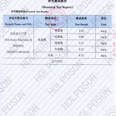胶原蛋白整理剂HOLPOSON® Xiao Qiao中含有的多种氨基酸活性成分与人体的皮肤蛋白中的氨基酸相似,经其整理后纺织品具有持久的保湿功能。经过胶原蛋白整理后的面料手感爽滑光泽度好,透气速干,对纺织品的含水量保湿率都能有很好的改善作用。