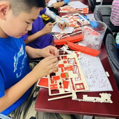 孩子们在老师指导下,一步步拆解模型件、研读说明书、协作拼插,不仅锻炼了动手能力,更在组装过程中深入理解了红船的结构与历史意义。