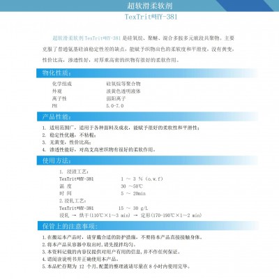 浸渍法:Water Soft 用量 0.2-0.6%(o.w.f);30℃浸渍 10-30 分钟→脱水(带液率约 70%)→烘干 100-130℃→定型 170-190℃。