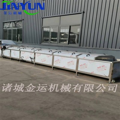 特点:采用食品级材料可靠。输送平稳,速度可调,物料随输送带的行进运动,能够避免对输送物的损坏。噪音较小,适合于工作环境要求比较安静的场合。结构简单,便于维护。能耗较小,使用成本低。设备配备上漂压网带,可以防止产品在水中因浮力作用产生上浮滞留现象。本机以热水为介质,分杀菌槽、冷却槽两部分。整体采用不锈钢制作,可根据包装物的要求对温度和时间进行任意调整。该机结构紧凑、操作方便、故障率低,加热方式采用锅炉蒸汽或锅炉热水,特别适合连续杀菌作业。设备采用手自控温系统,水质升温快、受热均匀、温差小温度可调,适合于不同产品的连续性巴氏杀菌。水浴式灭菌功能可有效的将物料均衡的混合在介质水中,提供了对物品的杀菌效果,可调速式输送系统可有效的控制产品的灭菌时间,合格的完成产品的灭菌工艺。