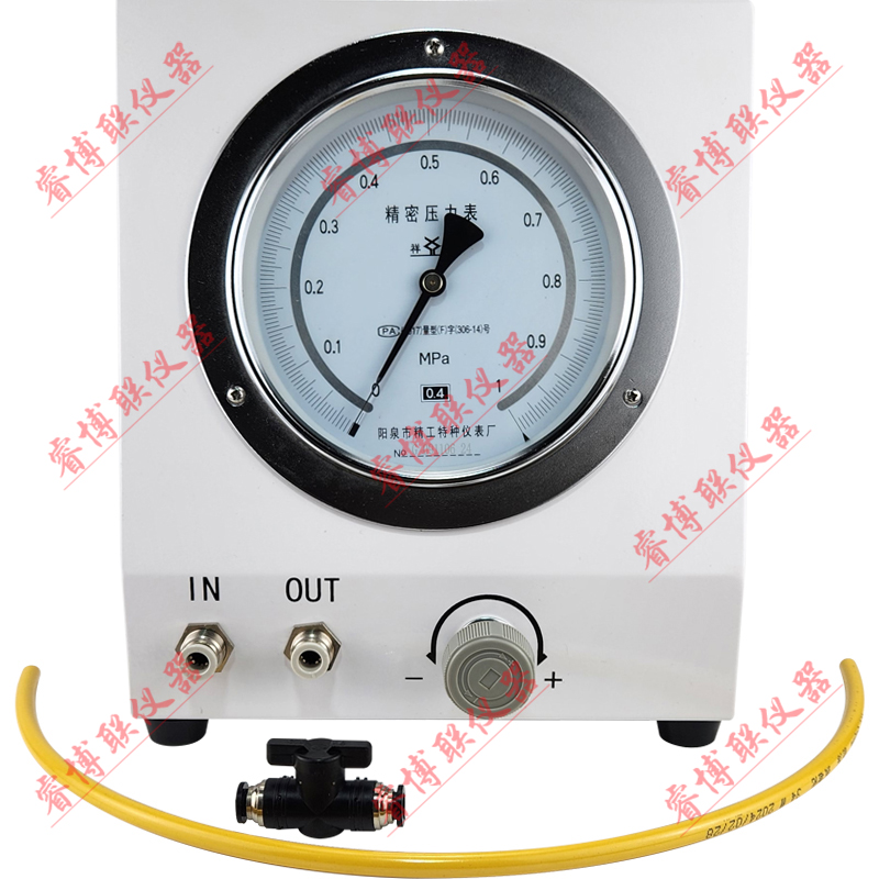 在前面板上方为一块量程为1.0Mpa的精度1级的数显压力表(数显压力表参数调节请参照随机所附的数显压力表说明书),其左下方为精密调压阀;调节后压力为试验时所需压力值。